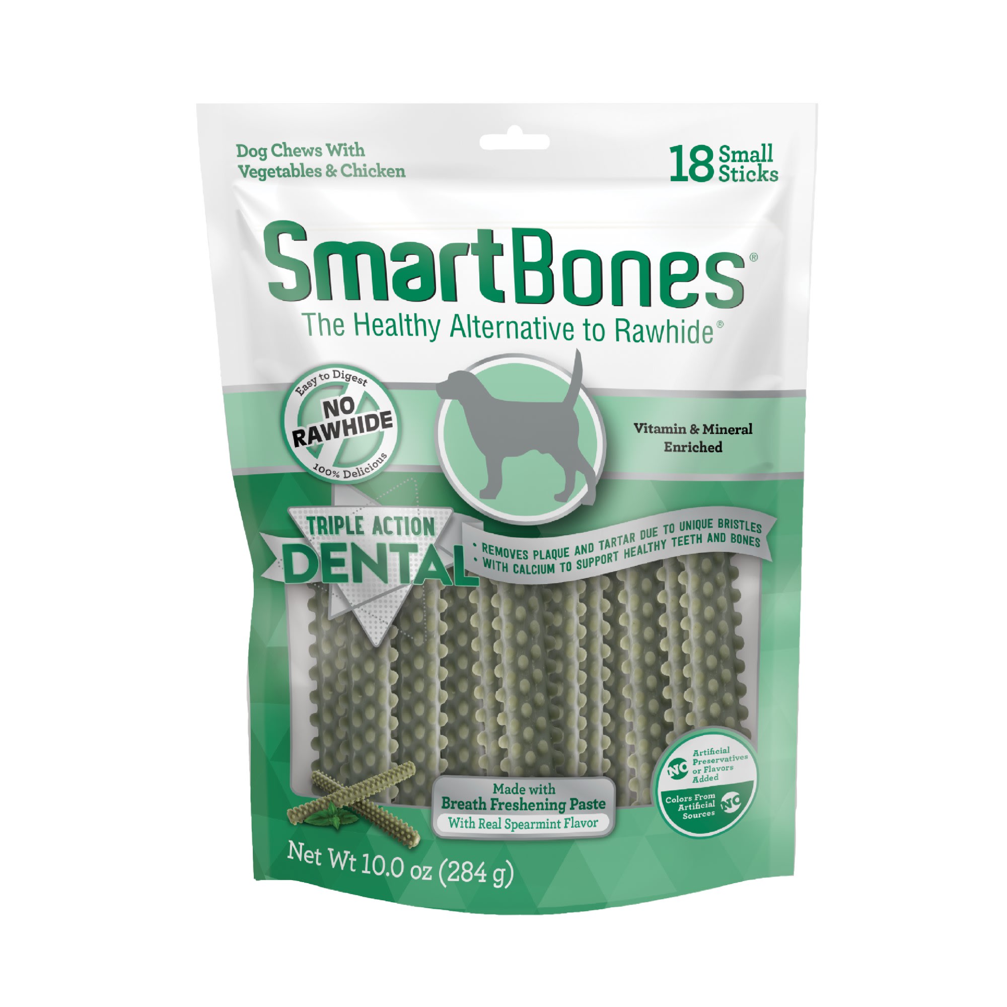 Smartbones Triple Action Dental Sticks Made With Real Seaweed Spearmint Flavor Rawhide Free Chews For Dogs 10 Oz Count Of 18 Petco
